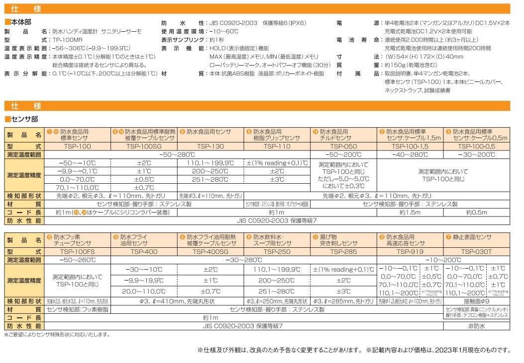 防水ハンディ温度計 サニタリーサーモ TP-100MR